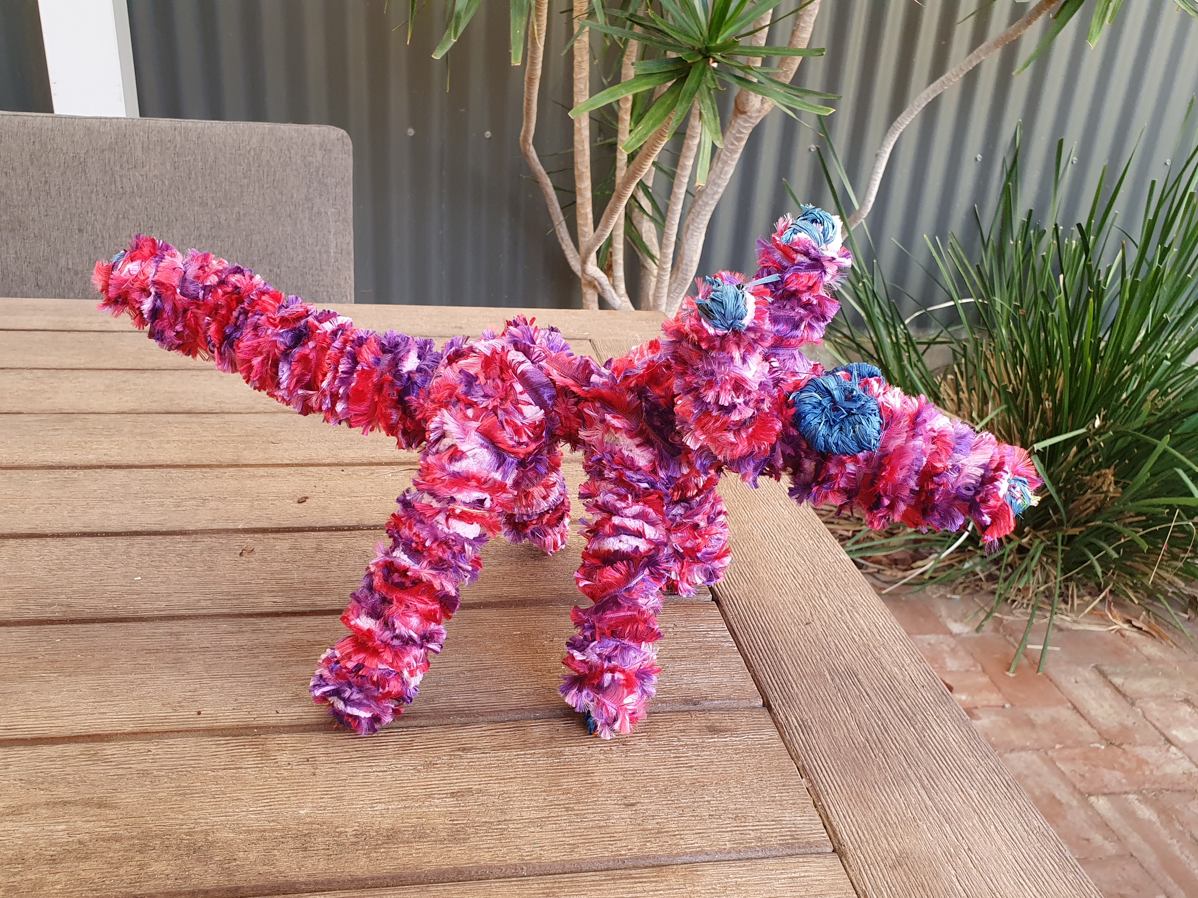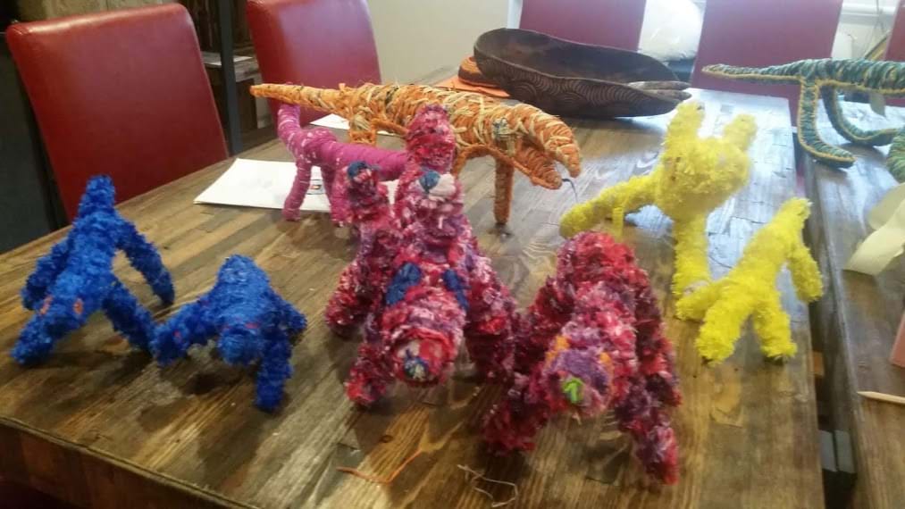 This raffia & wool animals are handmade by Anangu artists and/or ngangkari from the communities in the APY Lands at our Aborginal Healing Centre in Adelaide.