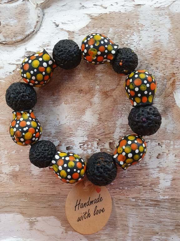 This lovely bracelet is handmade by the Anangu artists and ngangkari women at our Aboriginal Traditional Healing Centre. The 'Bracelet Dot Painting' is made of quandong and eucalyptus seeds.