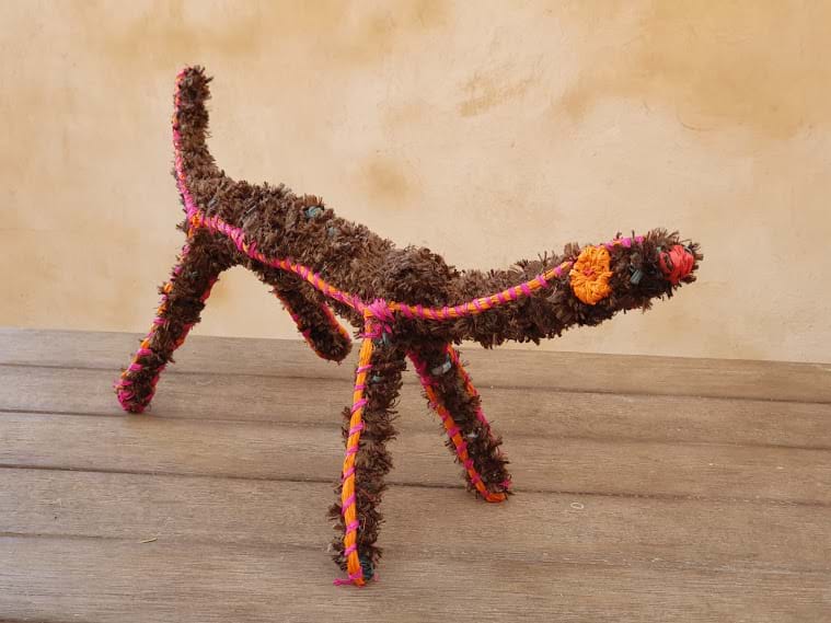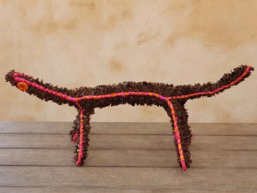 This raffia & wool animals are handmade by Anangu artists from the communities in the APY Lands at our Aborginal Healing Centre in Adelaide.
