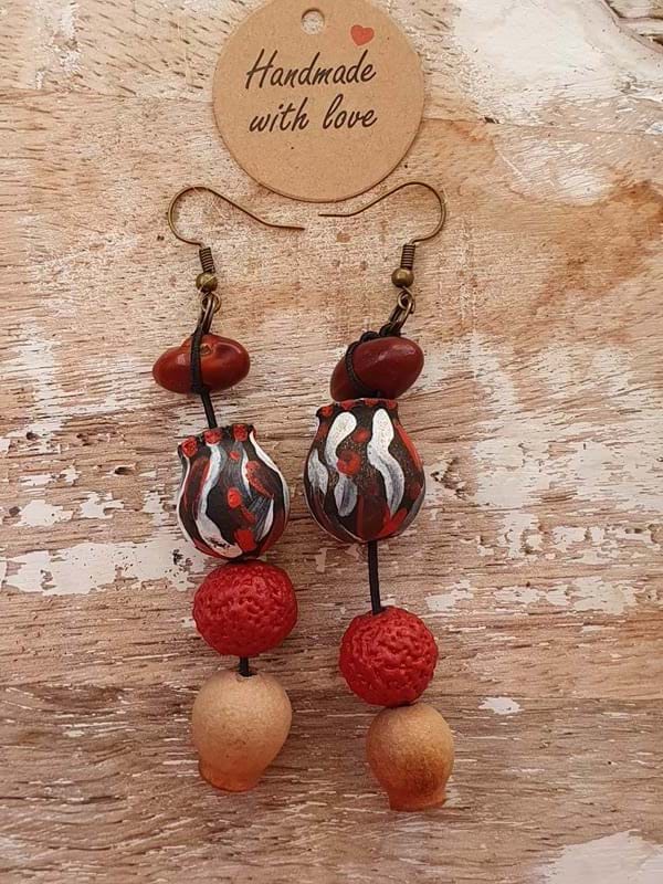 The Desert Seeds Earrings are handmade by the Anangu artists and ngangkari women at our Aboriginal Traditional Healing Centre. The earrings are made of different native seeds hand-picked on country.