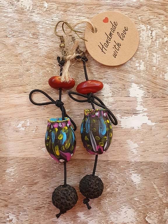 Earrings are hand-painted with gentle strokes and assembled with care.