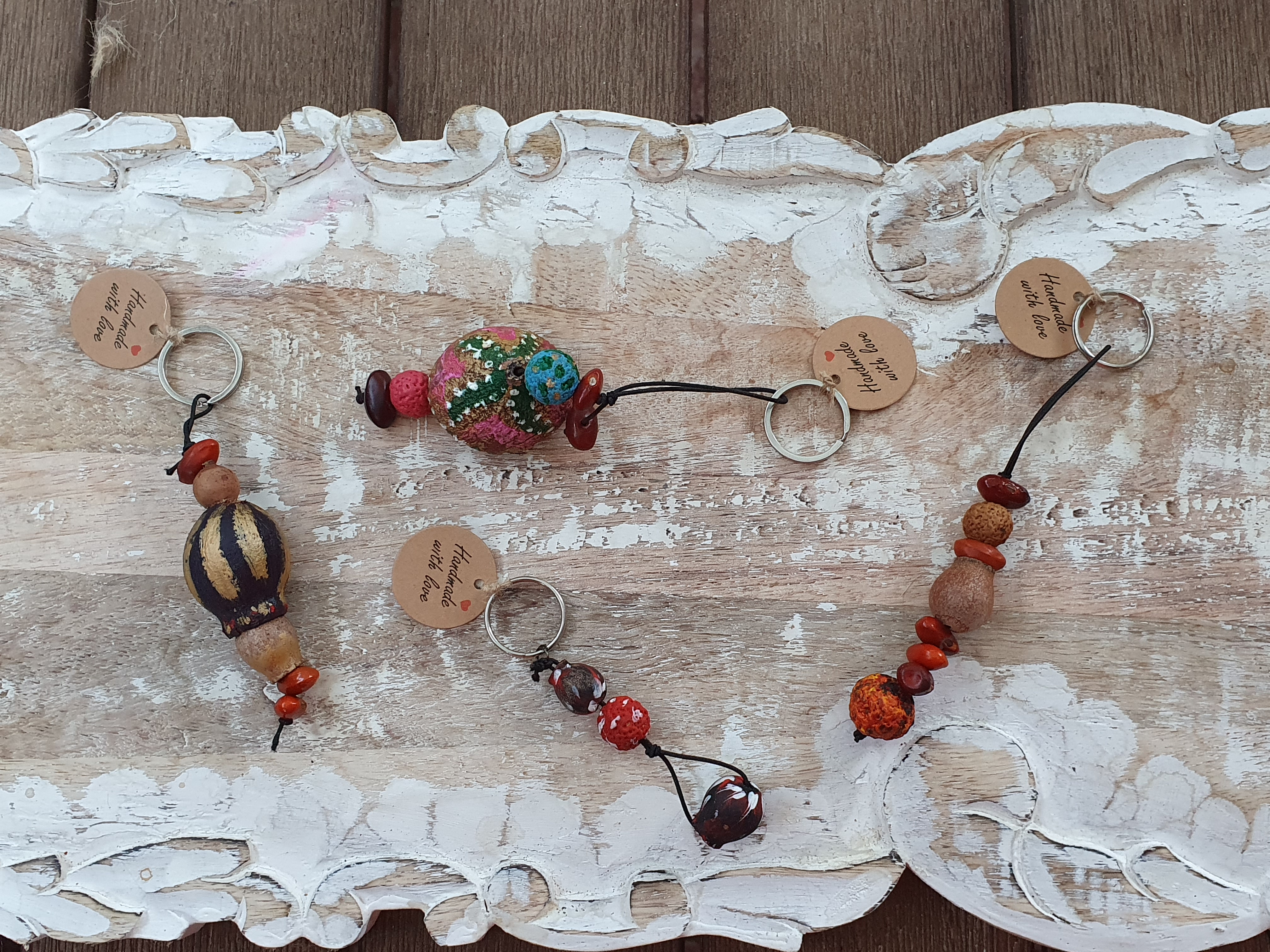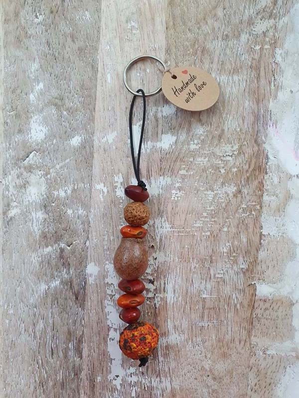 This pretty keyring is handmade by the Anangu artists and ngangkari women at our Aboriginal Traditional Healing Centre. The 'Keyring Fantasy' is made of different native seeds hand-picked on country.