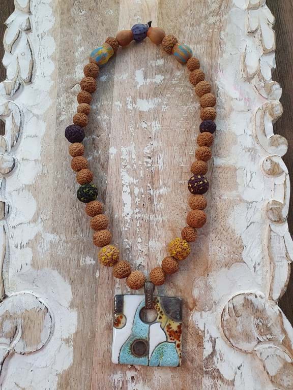 This necklace is hand-painted with gentle strokes and assembled with care.