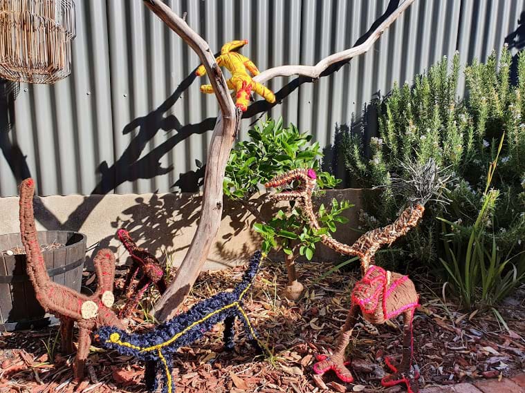This raffia & wool animals are handmade by Anangu artists from the communities in the APY Lands at our Aborginal Healing Centre in Adelaide.