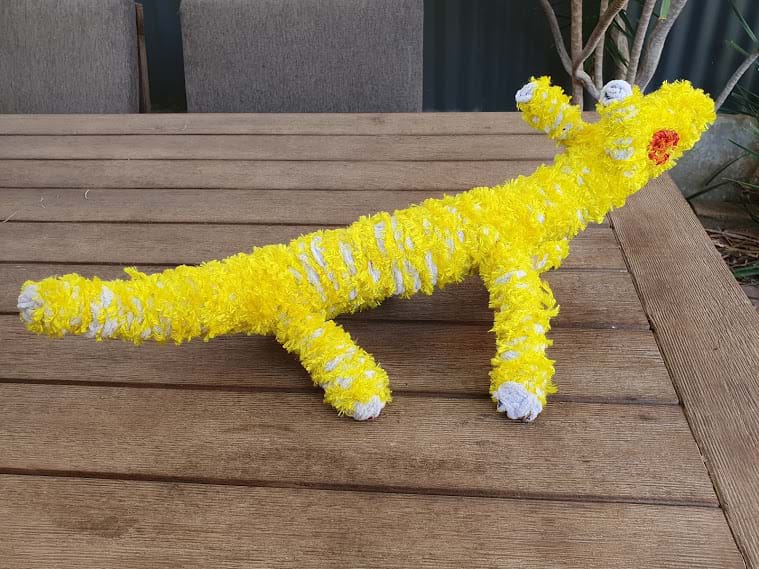 This Yello Papa ( Yellow Dog) is a cute handmade by Pollyanne Smith. It can be treasured as a fond memory, given as a toy or as a unique Aboriginal handmade artcraft xx
